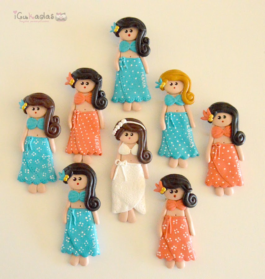 Broches personalizados para un grupo de amigas y familiares de la novia que querían temática playera, ya que se iban a celebrar el fiestón a la playa.
