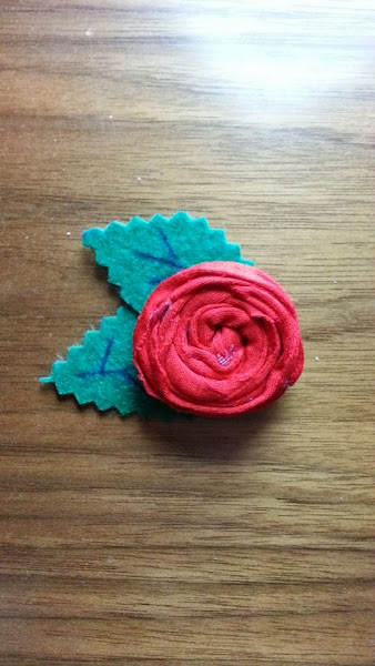 Flor hecho con trapillo y hojas en fieltro,para decorar tu diadema o hacerte un broche