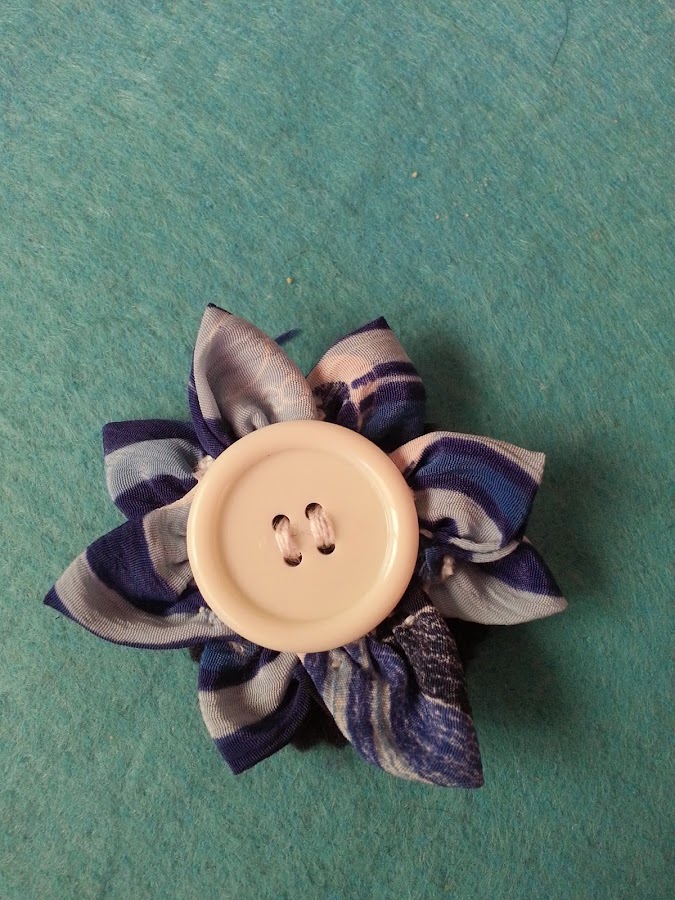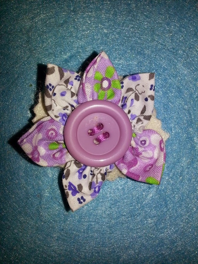 Broche flor hecho de tela con base de fieltro,es ideal para decorar tus camisetas o bolsos que le faltan ese toque 2? g.incl.