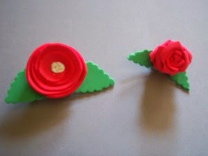 Hoy, por el día de San Jorge que menos que celebrarlo con unos fáciles, rápidos y bonitos broches de goma eva, que pueden servir para un detalle para nuestra madre, amiga....