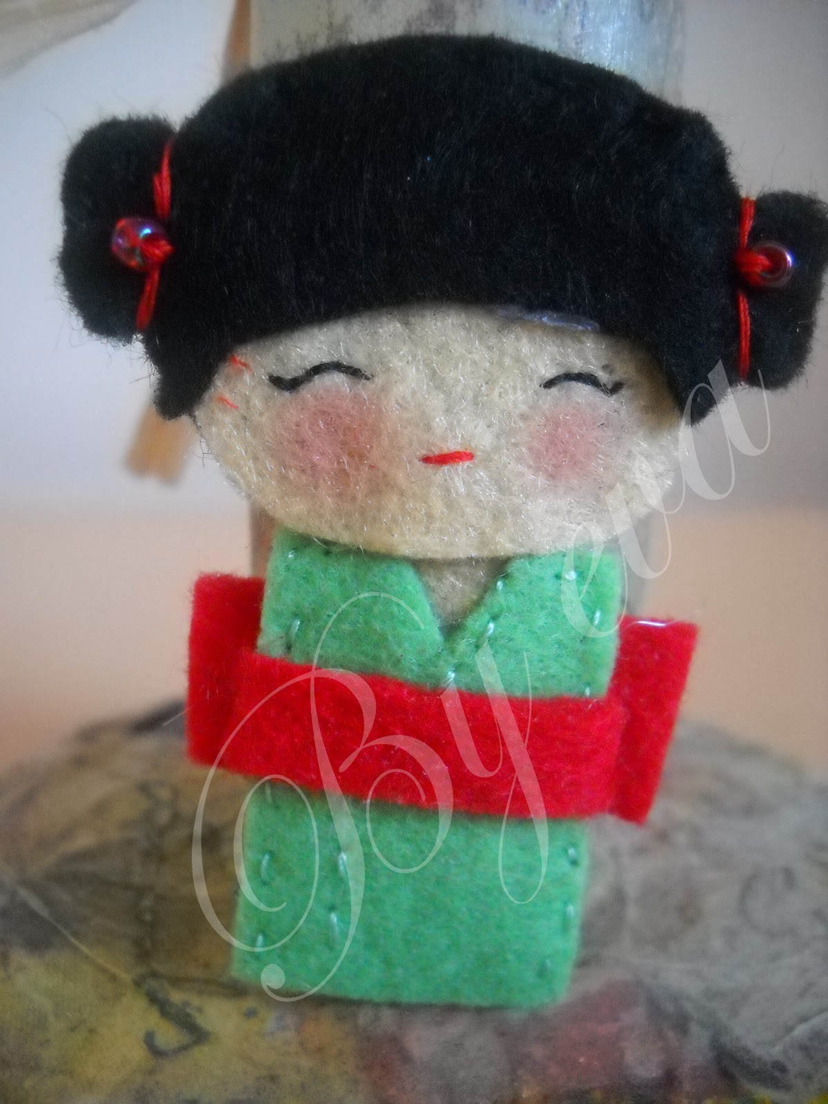 Y una Kokeshi, me gusta mucho el aire que tienen ...tan tierno......... gracias a Carmela del foro El Acerico.