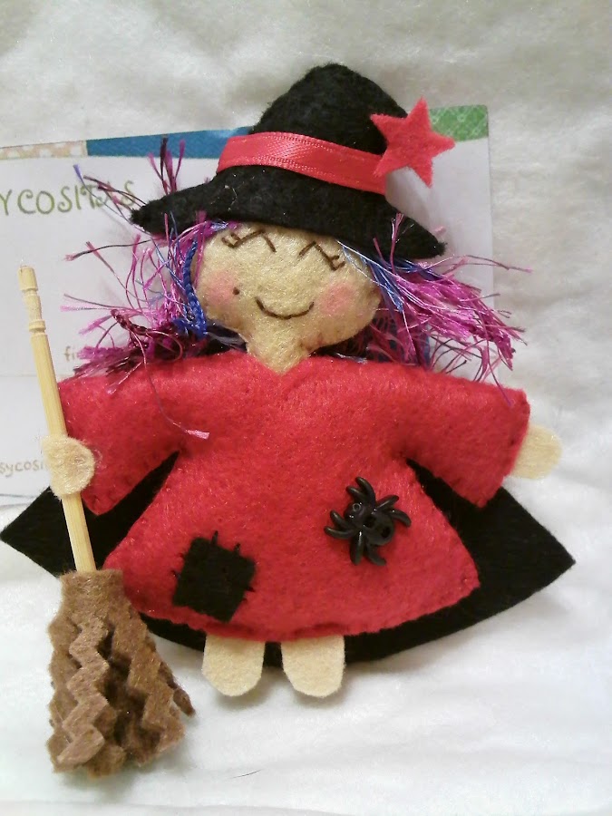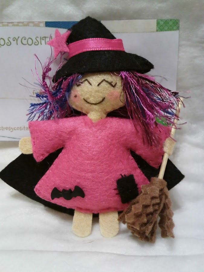 Estas dos brujas tan coloridas están listas para adornar la solapa de mi cazadora, x que siempre hago cosas para otros, pero estas son para mi, x que yo lo valgo...jejejej