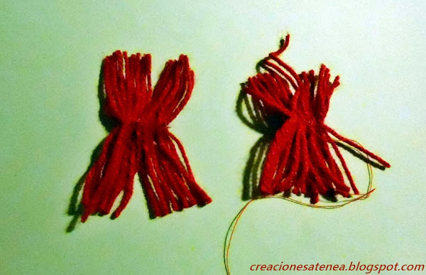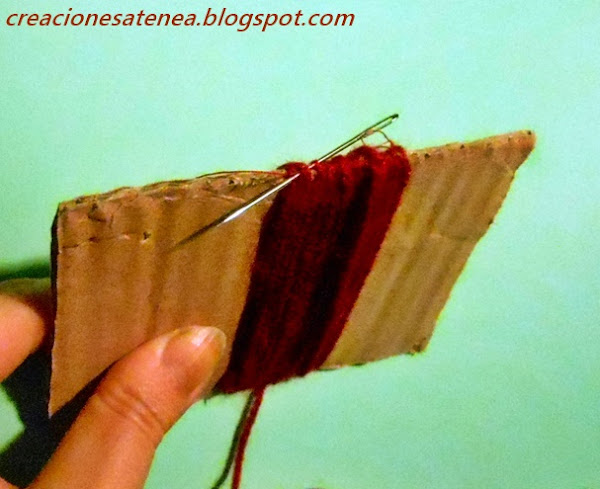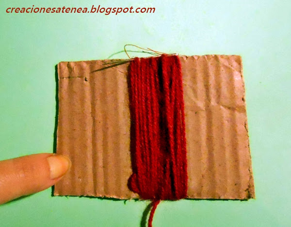 Envolví la lana en un trozo de cartón y lo cosí por ambos extremos, cortándolo luego por la mitad.