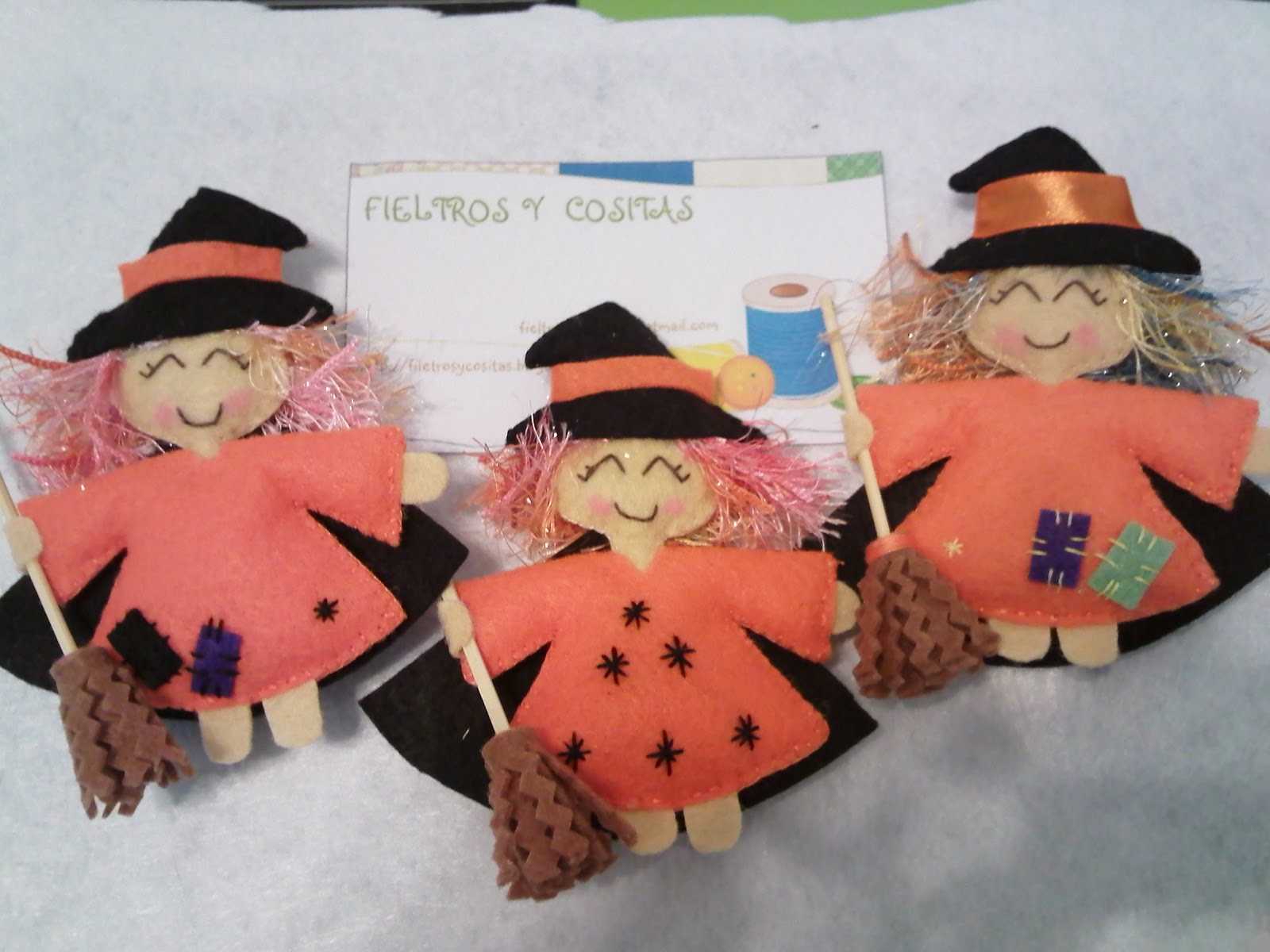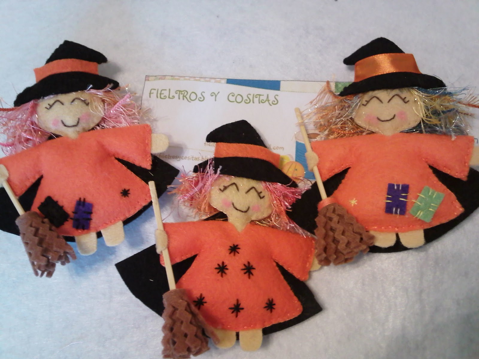 Cristina me pidió una brujita de fieltro en tonos naranjas , hice 3 para que ella pueda elegir la que más le guste,,que os parecen ?????"
