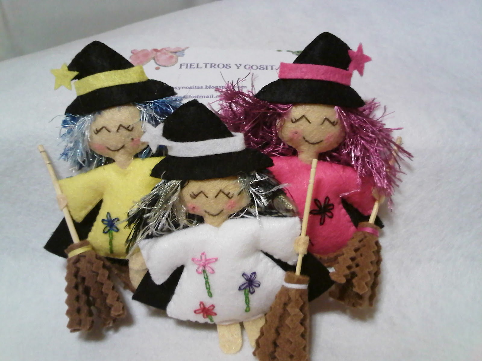 Tres nuevas brujas de fieltro listas para partir a sus nuevas casas,