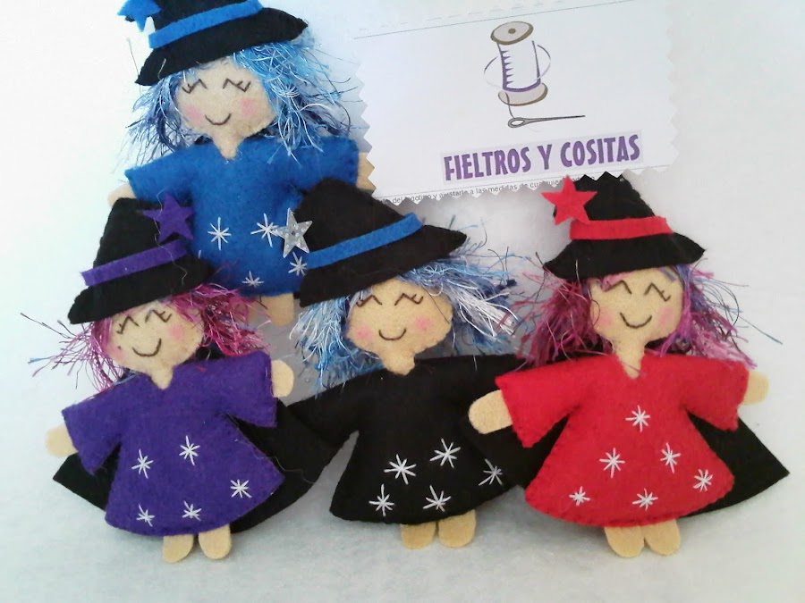 Hoy os muestro unas brujillas de colores variados para todos los gustos, en esta foto están esperando pacientemente una escoba..jejejejeje