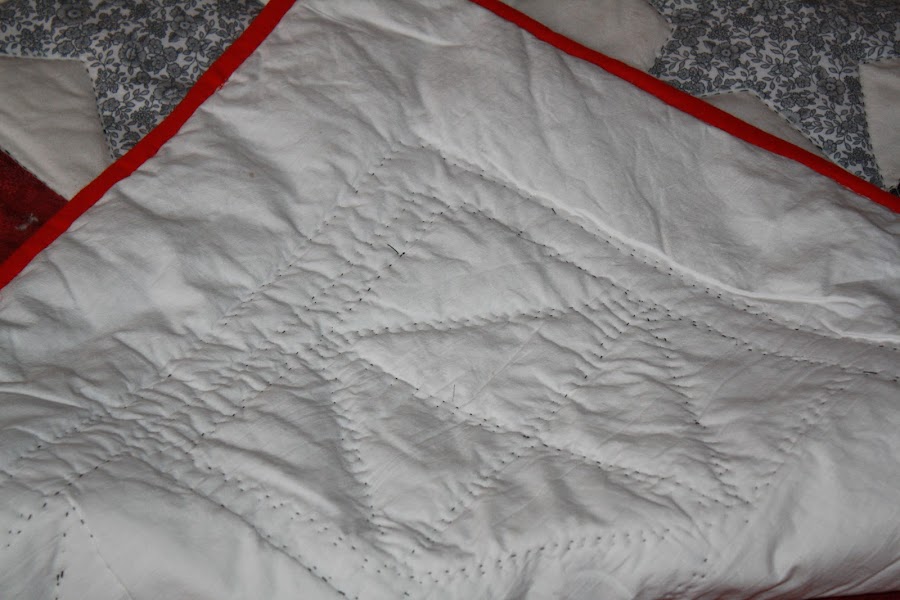 Pensé que iba a ser un rollazo esto de acolchar solamente, pero resulta que me lo estoy pasando teta acolchando los detallitos, cambiando de hilo cada dos por tres............