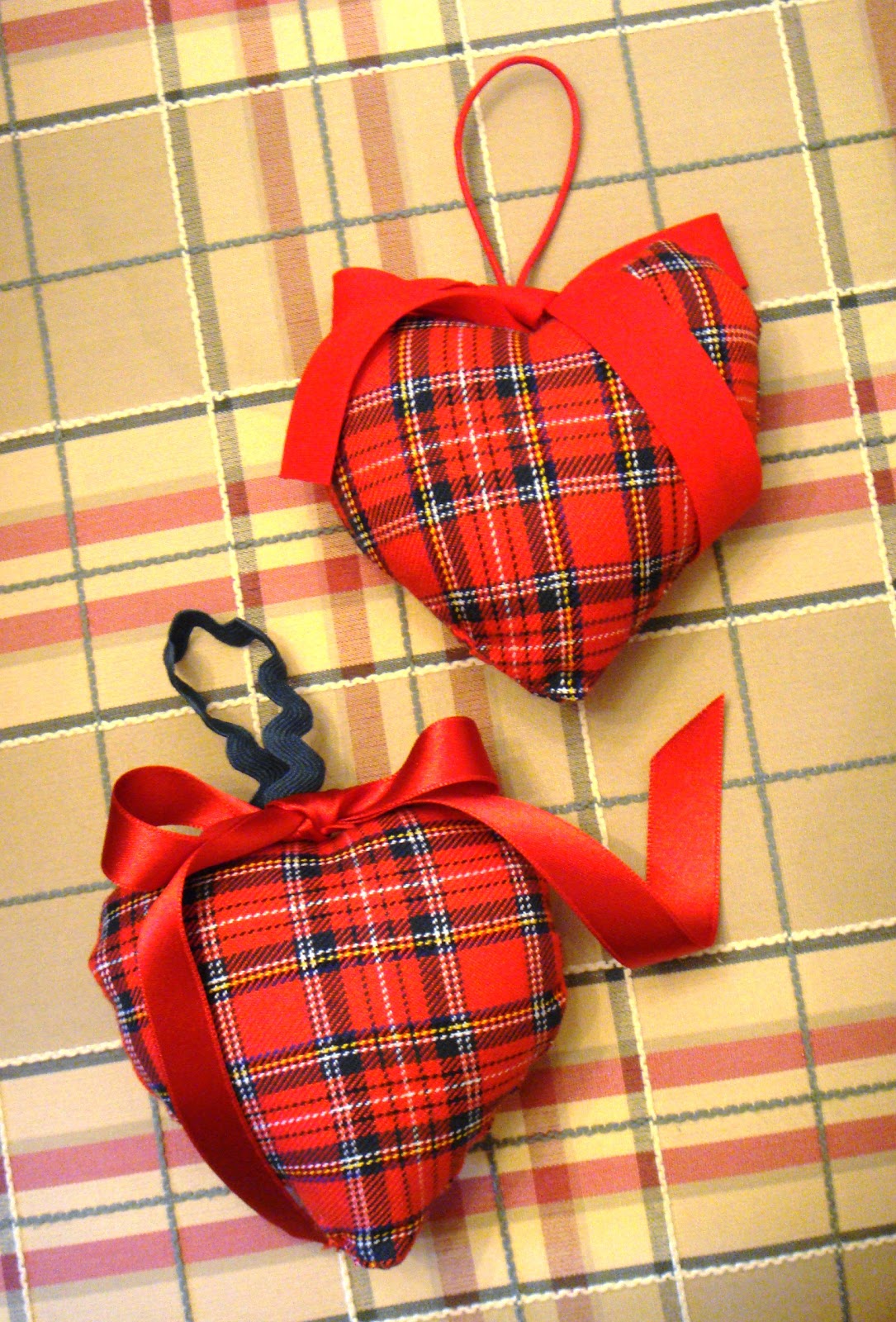 Esta vez, el objetivo era hacer adornos con telas escocesas (y también aprender a hacer pompones..esto para mi).