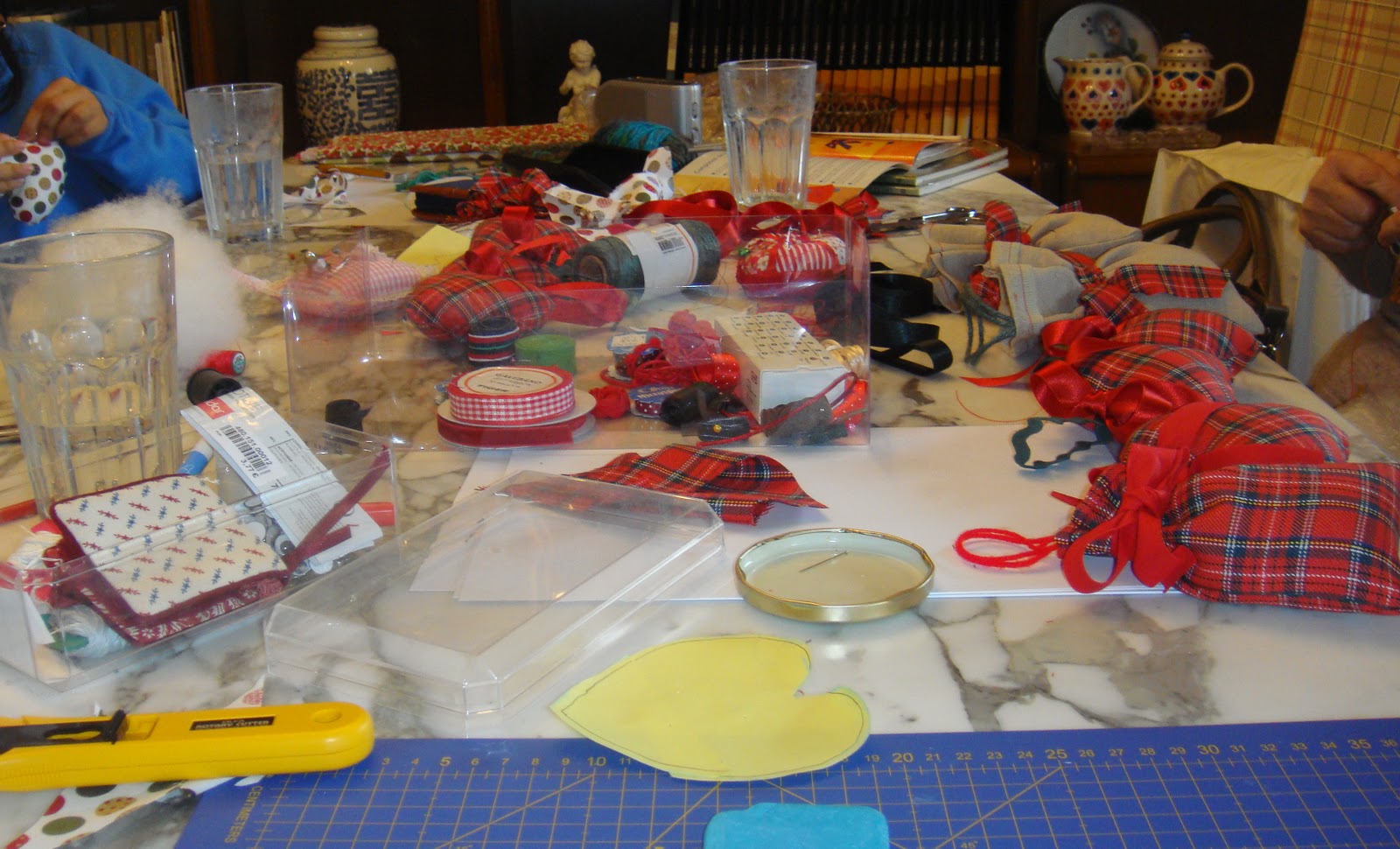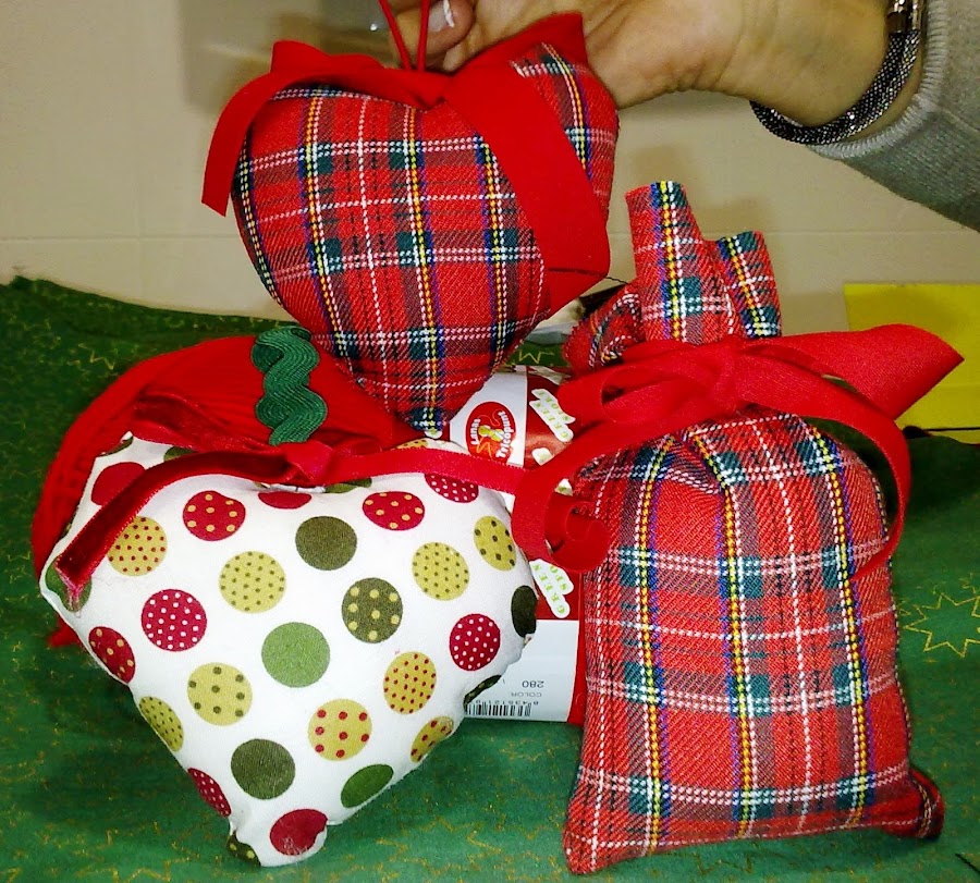 Como ya no falta nada para las Navidades..(imposible no darse cuenta eh??) cuando fuimos a Pamplona por última vez aprovechamos para juntarnos el Taller de Costura familiar...es decir: mi madre, mi tía, mi prima, Isabel y yo. (Cada vez somos más!!! jiji) (ya el año pasado hicimos algún adornito, si queréis verlos pulsad aquí)