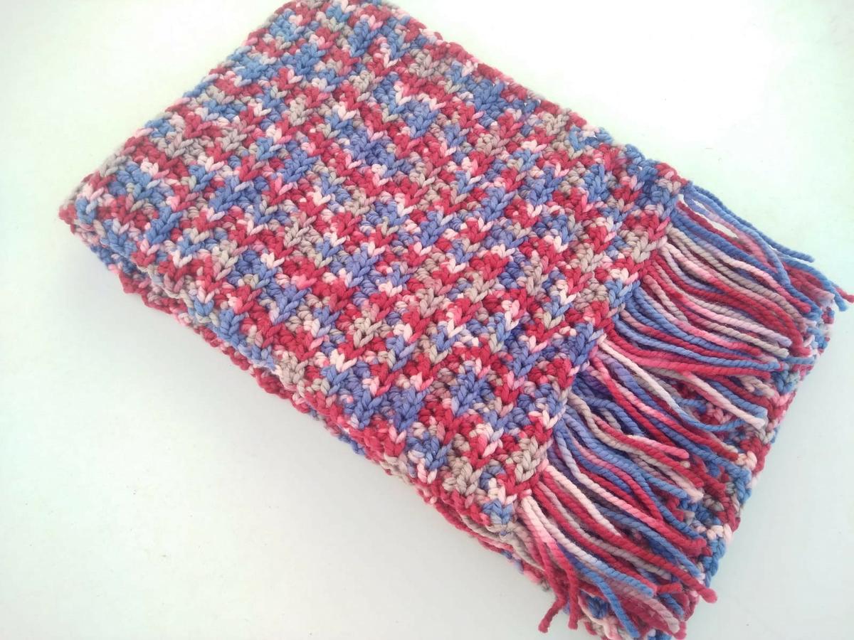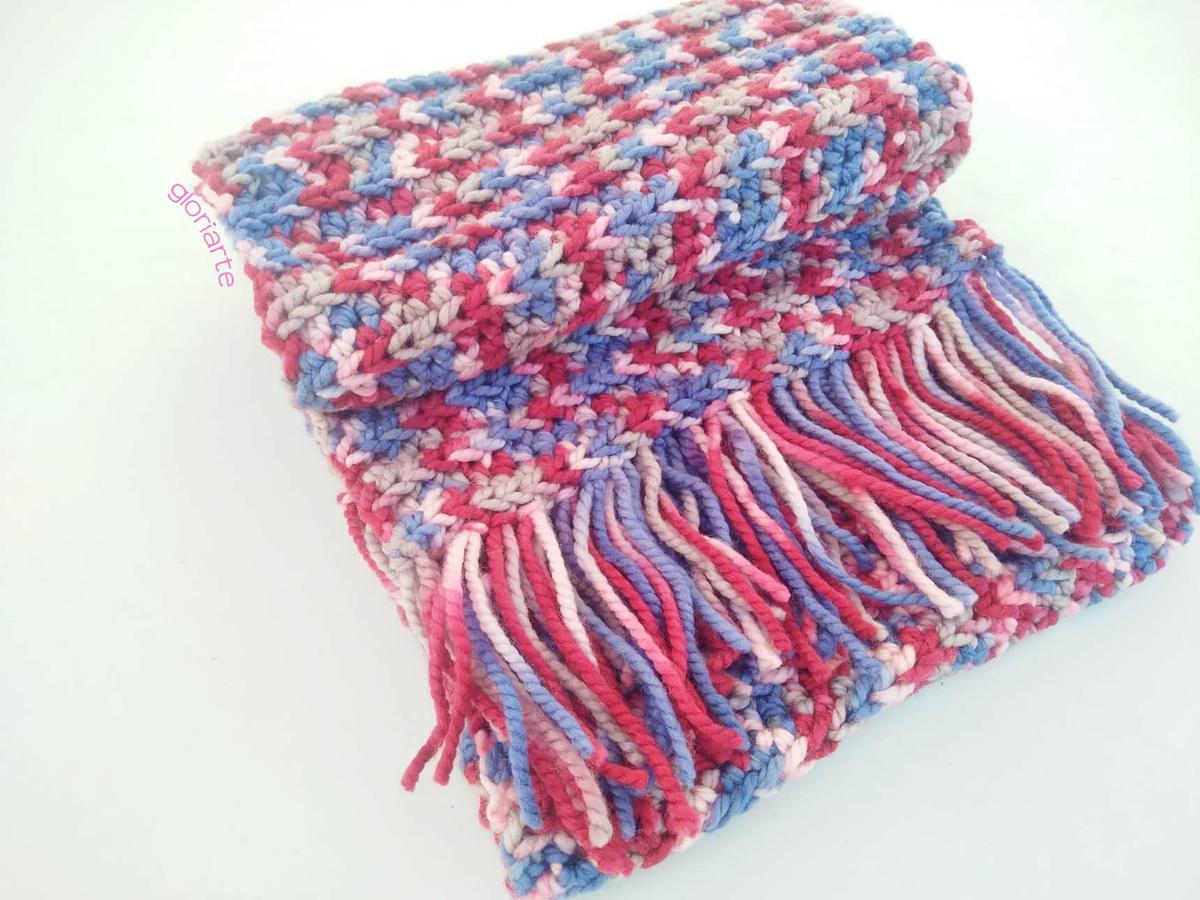 ¡Felicidades! Ya tienes tu bufanda terminada.