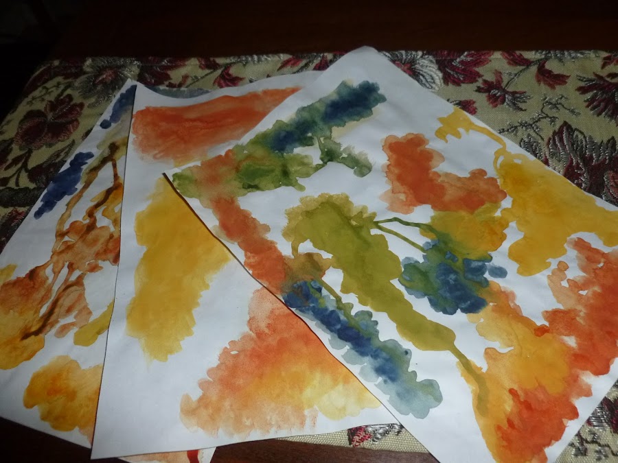 Con la pintura para sublimar vamos manchando con diferentes colores sobre el papel mojado y mover este, para que la pintura se extienda ( como cuando pintamos con acuarelas).