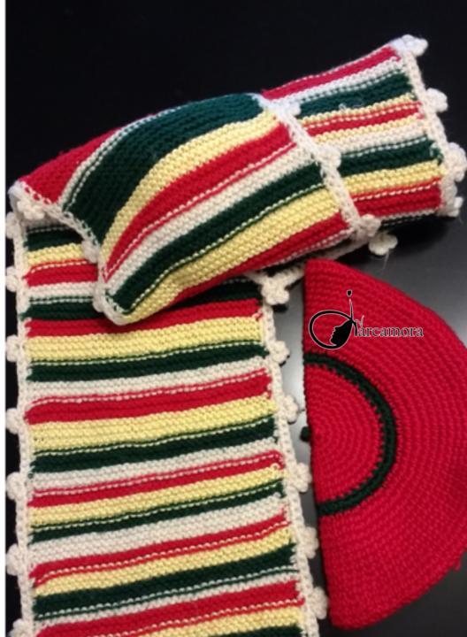 La boina es superchula y me queda muy bien. Es circular y aunque es roja lleva una franja en color verde.