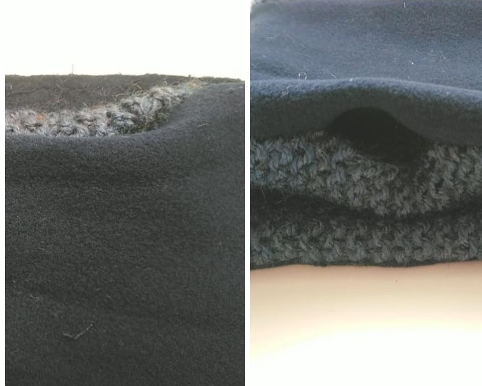 Y cerramos el forro de tela polar, con la costura lateral: