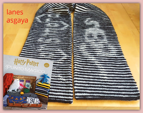 Pues es un patrón de lo más sencillo: sólo se trata de combinar puntos de derecho y puntos de revés. Además, cosa muy muy de agradecer, el patrón está en español. Forma parte de un libro absolutamente maravilloso con patrones relacionados con Harry Potter. Os lo recomiendo totalmente.