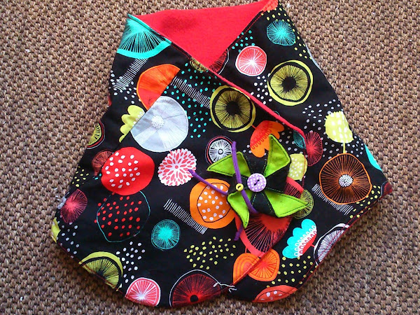 Le he hecho algún pequeño cambio, he redondeado las puntas y todavía no he puesto botones, me lo pongo con un broche. Algún día sacaré tiempo para ponerle snaps jejeje