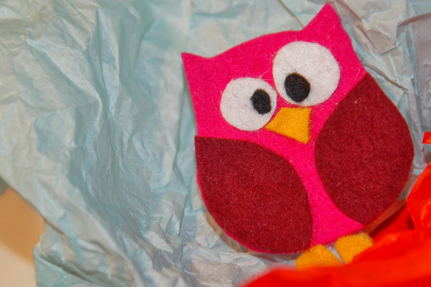 Tengo pendiente haceros un poti poti de todos los búhos que he hecho...pero hoy os dejo con el búho de fieltro, es un broche, y me gusta mucho por los colores, y esos ojazos...
