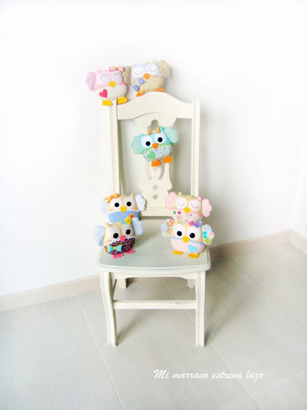Hoy por fin, desde que abrí la tienda, he tenido tiempo para hacerles una foticos, a una de las ultimas cosas que hice antes de empezar con la tienda. Son un búhos la mar de simpáticos. algunos despiertos, otros dormidos, pero todos rebonicos!!!!!