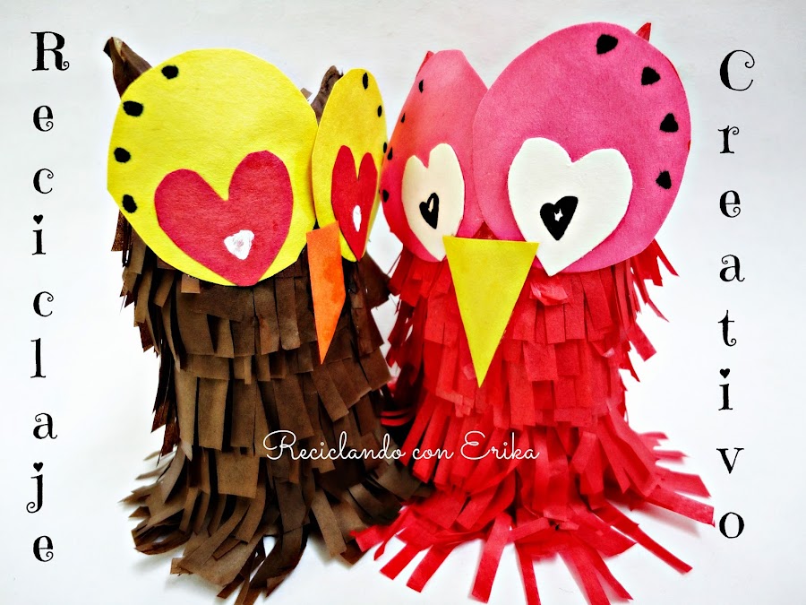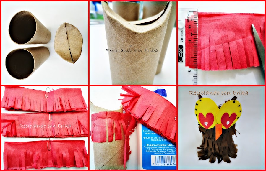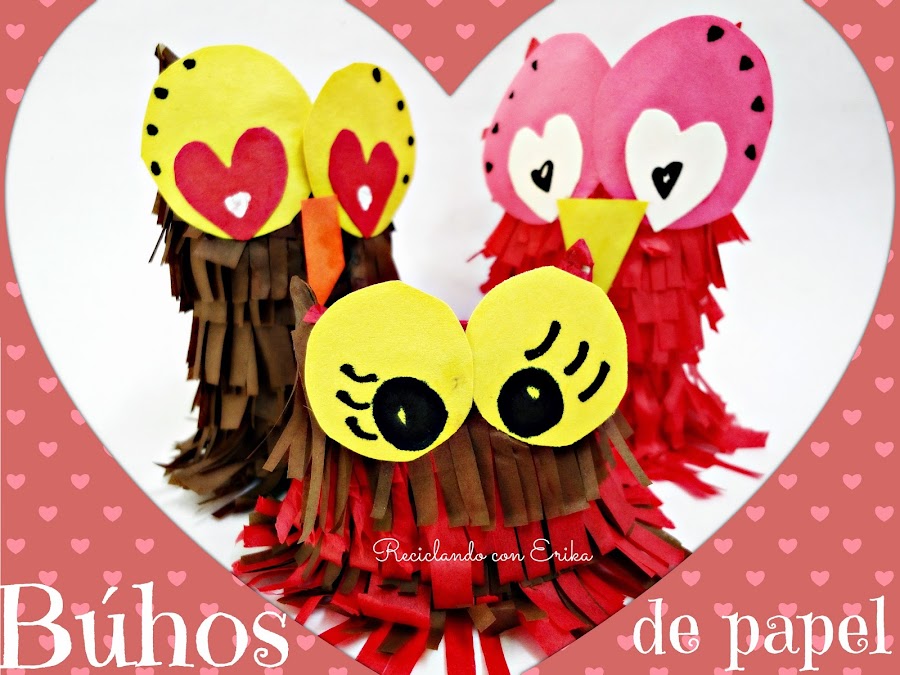 Estos lindos búhos están hechos con tubos de cartón reciclados ,