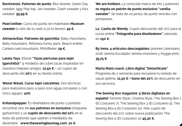 No me digais que no es una buena oferta... Es un ¡OFERTÓN! ¡No podéis desaprovechar esta oportunidad! Es el regalo perfecto para esta Navidad, o para un amigo invisible o un autoregalo ¡porque sí! ¡Ya solo por los libros de The Sewing Box merece la pena! Yo, desde luego, no voy a desaprovecharlo.