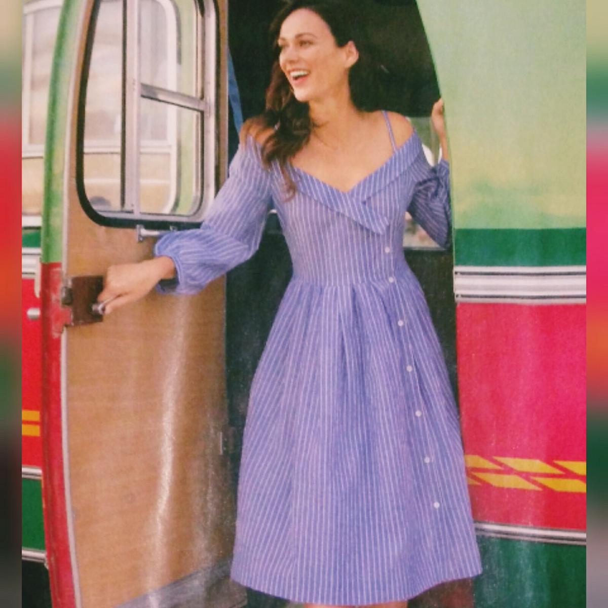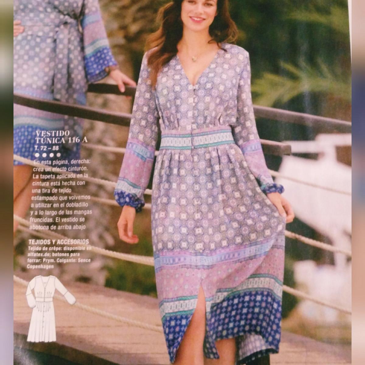 La forma es preciosa, con el cuerpo ajustado y la falda fruncida desde la cintura, pero el escote es una maravilla. Imaginaos este modelo con el cuello y los botones en contraste, puede ser una maravilla. Y, de nuevo, las mangas fruncidas en el puño, como en el modelo anterior, quedan preciosas. Este tiene papeletas para ser cosido en breve.