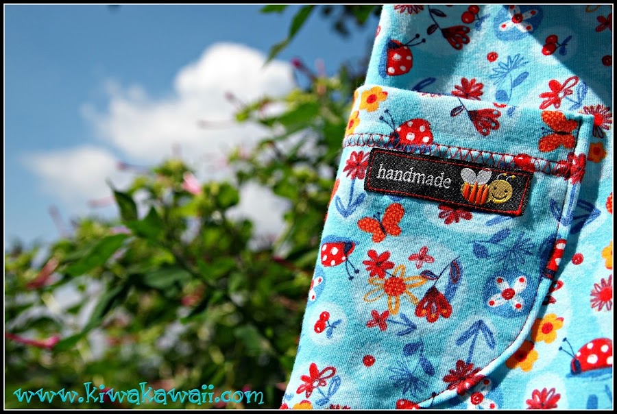 Lleva dos bolsillos enormes para guardar muchos tesoros (espero que no sean en forma de piedras, jejeje) En el de la izquierda puse la etiqueta handmade de la abejita.