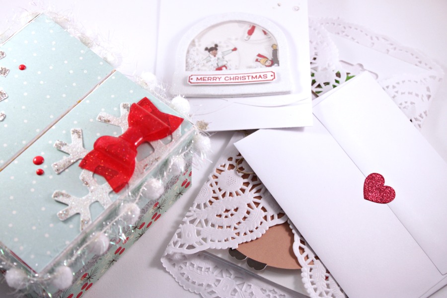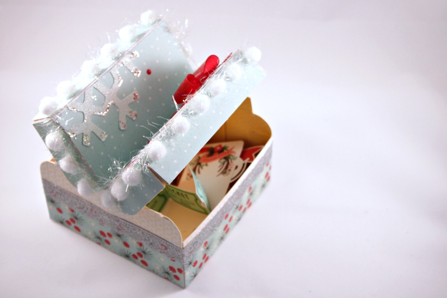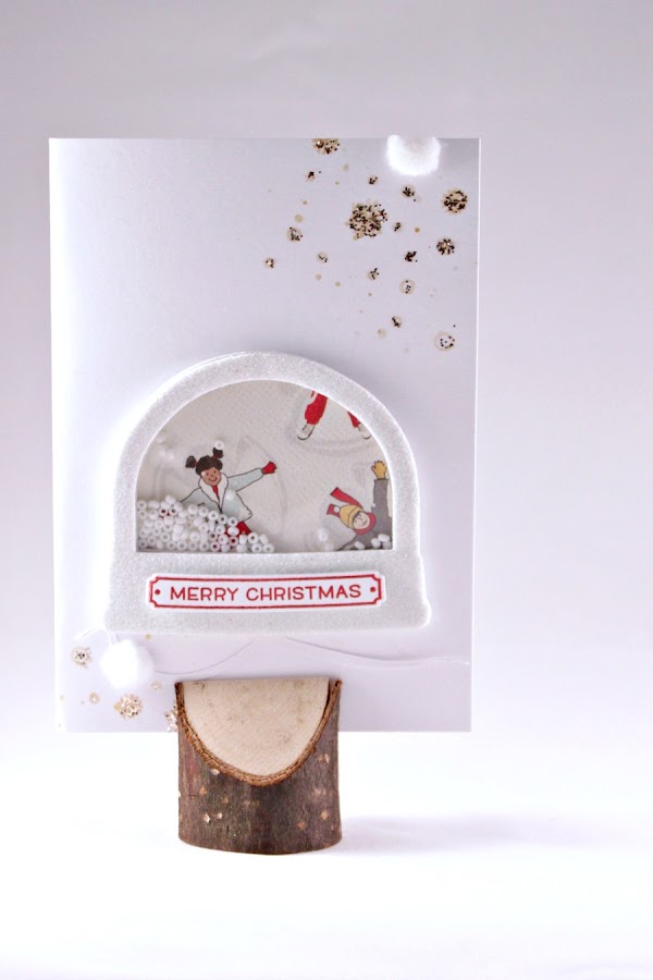 He hecho una mini shaker card y la he puesto sobre una tarjeta en blanco, unos copos de nieve y lista!