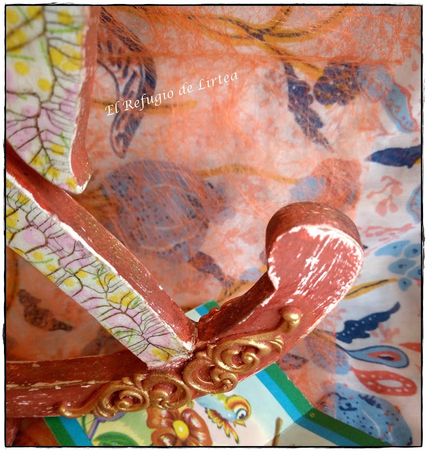 Después del decoupage hice un craquelado con craquelador de dos y con cera hice que las grietas fuesen más visibles.