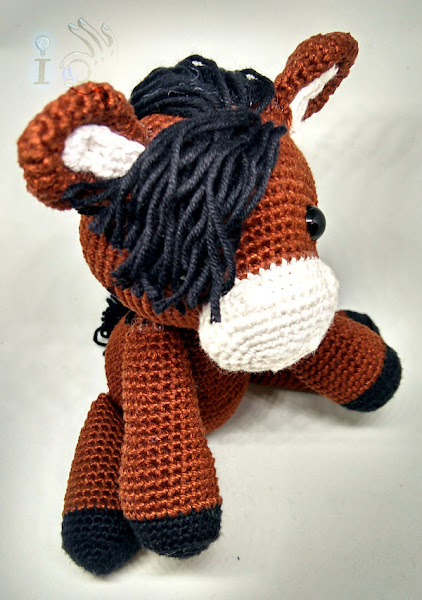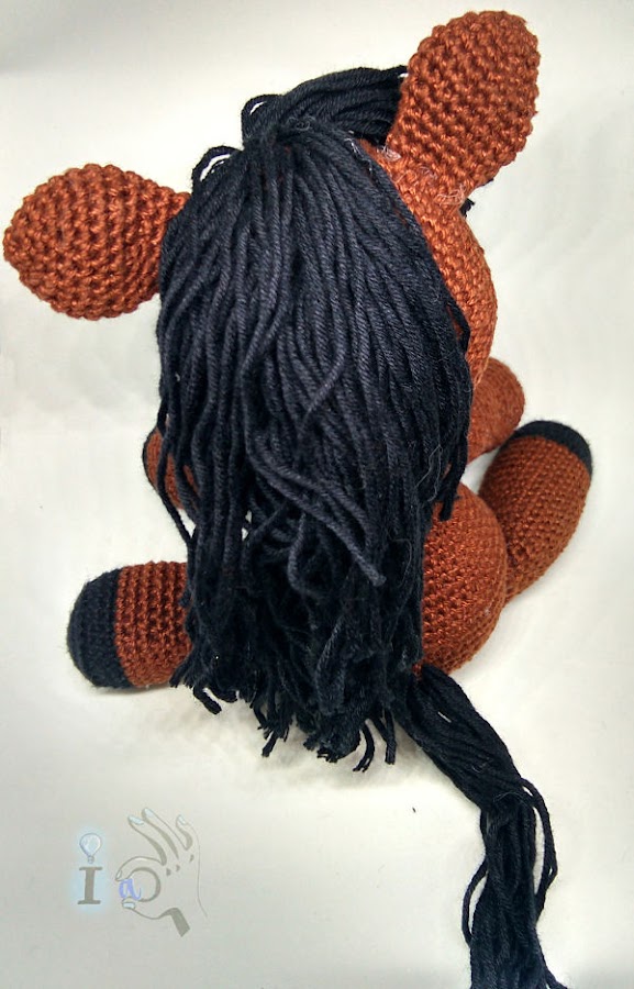 Para hacerlo me basé en el patrón de Heidi the Horse, pero cambié los colores y algún detallito más como la cabellera (él quería mucho pelo)... Pero ya le tengo aquí metiendo prisa para hacer su pase me modelos particular así que mejor os lo enseño...