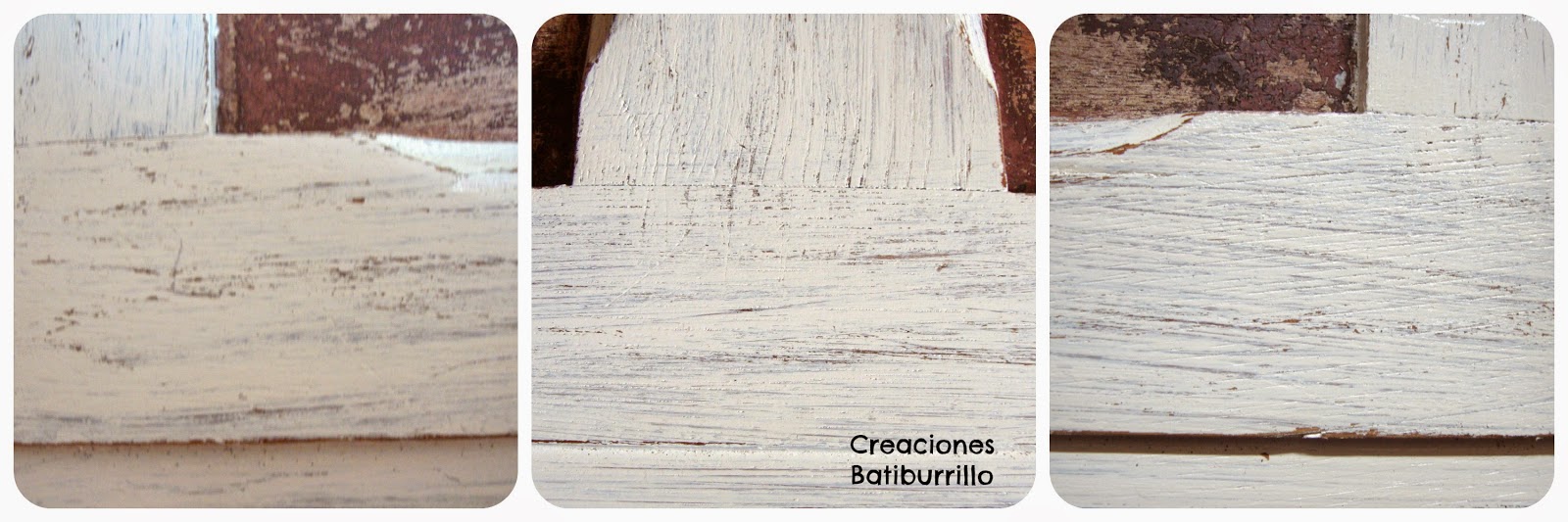 Como quiero conseguir una pintura con aspecto envejecido le paso una vela por algunas partes a la madera para después lijar y que se vean como grietas marrones del color de la madera de abajo. Rellené un poco con masilla las esquinas que estaban comidas de polilla, no demasiado, porque si es vieja, se tienen que notar las imperfecciones, o no?
