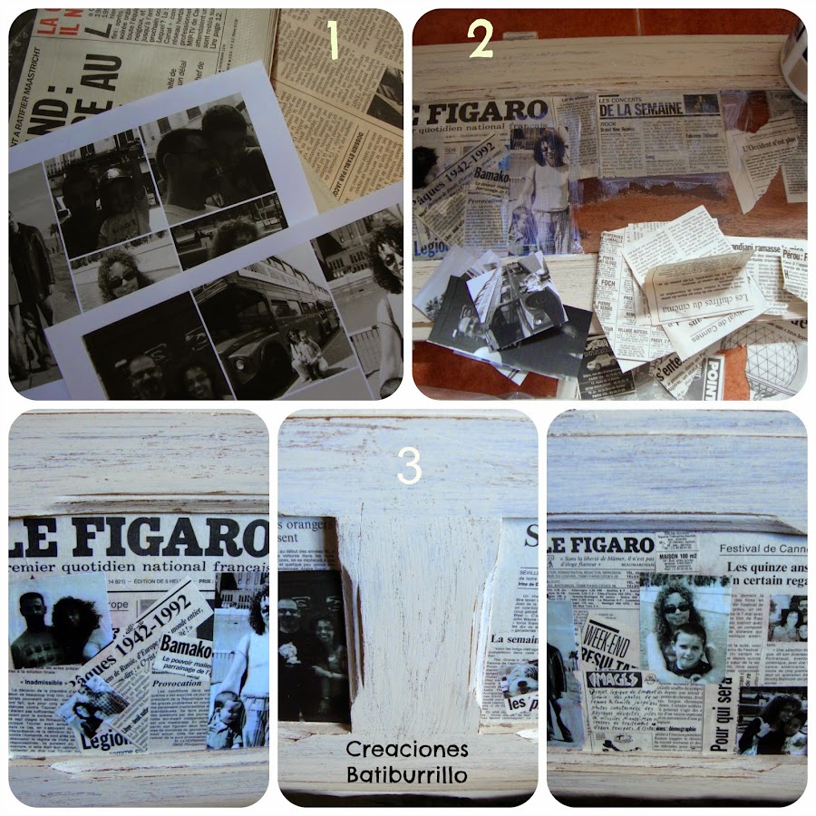 De nuevo veis que no he respetado ningún esquema concreto, pero sí me tiene que gustar el impacto visual final, lo he comentado muchas veces. Al natural no se aprecian tanto las diferencias de tonalidad entre lo que es periódico y las fotos, queda más difuminado e integrado en el conjunto.