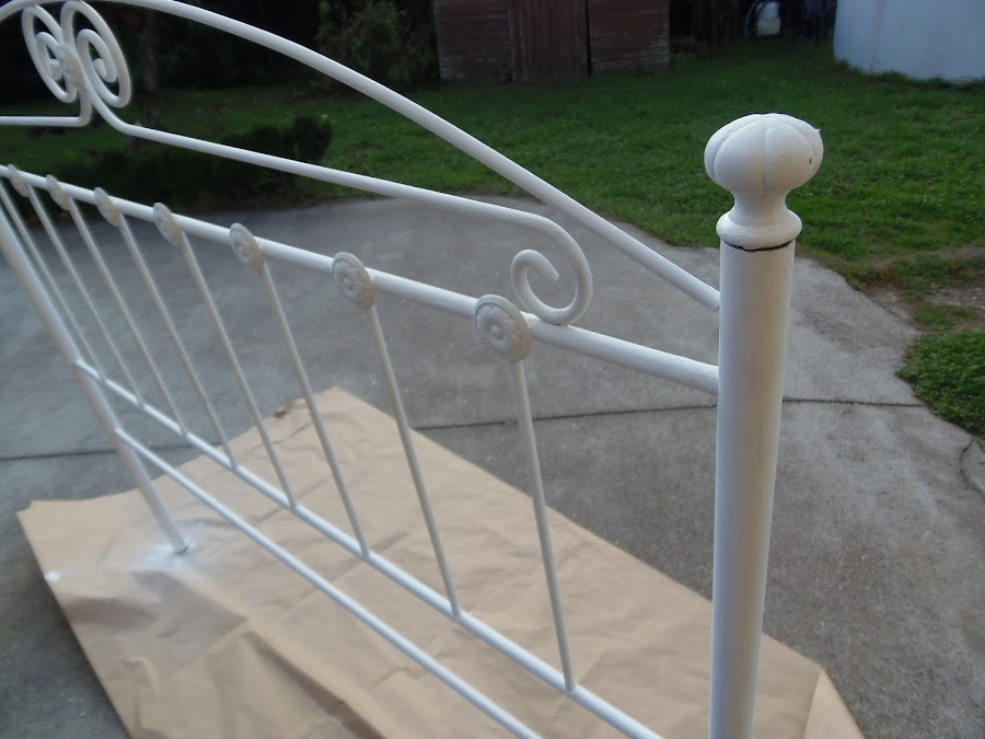 Cuándo descubrí las pinturas tiza en spray supe qué ya tenía una "víctima"...el cabecero!!!Me puse manos a la obra y con 2 pasadas lo tenía hecho.Hay qué agitar el bote haciendo sonar las bolitas cómo cualquier spray y aunque tengo la suerte de poder hacerlo en el exterior si lo hacéis dentro de casa debéis proteger la zona,aunque para mi sorpresa y quizá porque la pintura es espesa no mancha mucho.