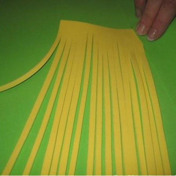 CORTAR UN RECTANGULO Y CORTAR VARIAS TIRITAS SIN LLEGAR AL BORDE ,PARA DARLE EL TOQUE PONLE UN POCO DE PLANCHA CALIENTE ASI LOGRARAS EL EFECTO DE VIRAR PUNTAS