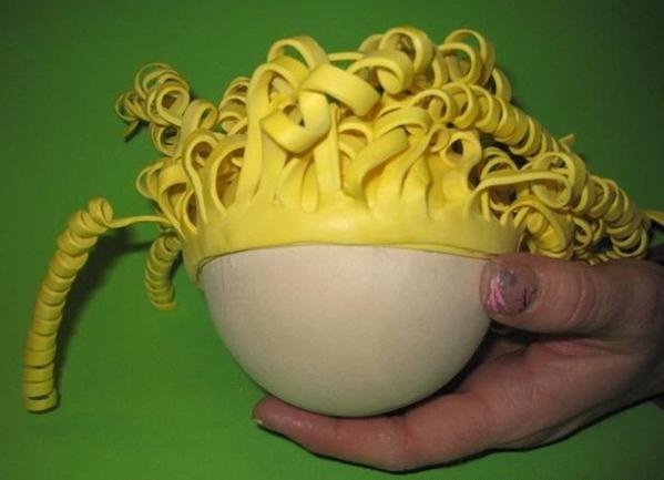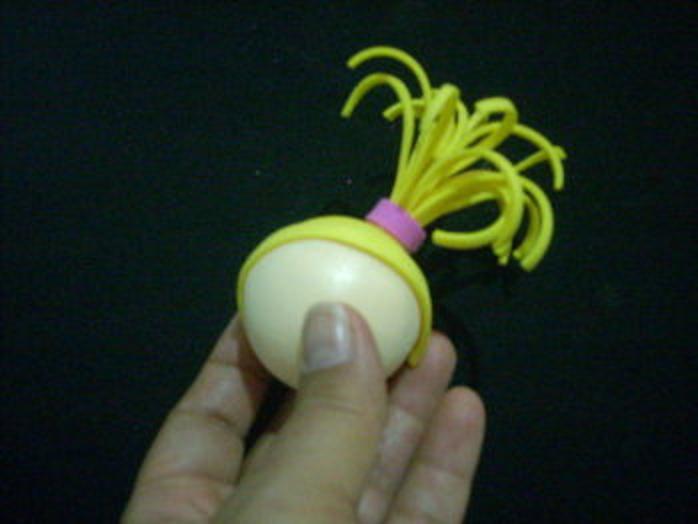 LUEGO ENRROLLA Y PEGA PUEDES PONERLE UN RETACITO DE FOMIX BLANCO EN ESTE CASO PARA APARENTAR EL MONO
