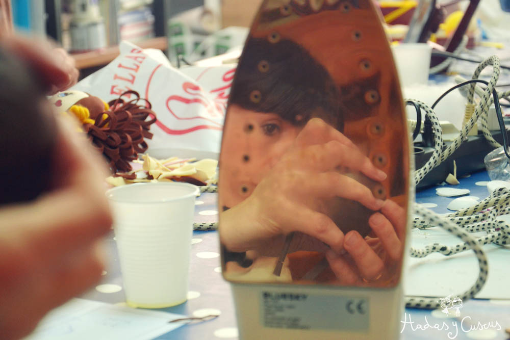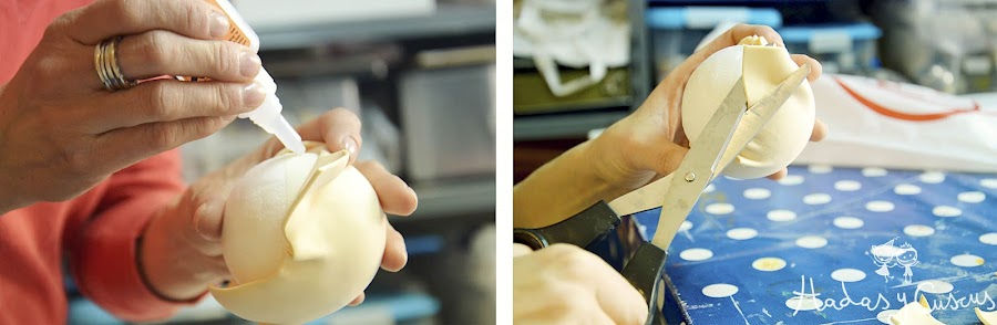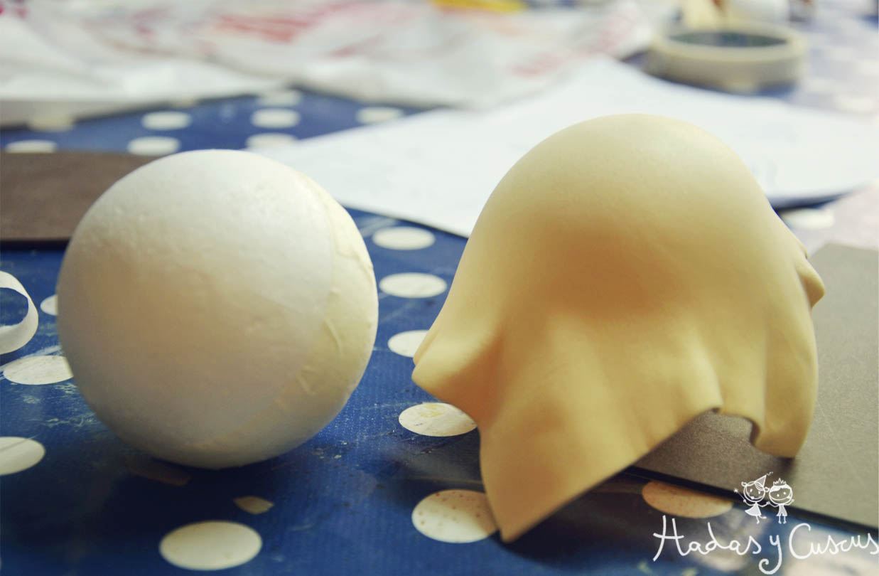 Cortamos en la tela dos círculos de unos 18 y 22 cm. de diámetro. Enhebramos la aguja con una hebra como la de Maríamoco e hilo doble y le hacemos un nudo del tamaño de la cabeza de un gato para que ...