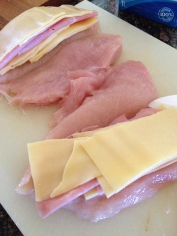 Abrimos las pechugas de pollo en forma de mariposa y metemos el jamón y el queso dentro. Salpimentamos