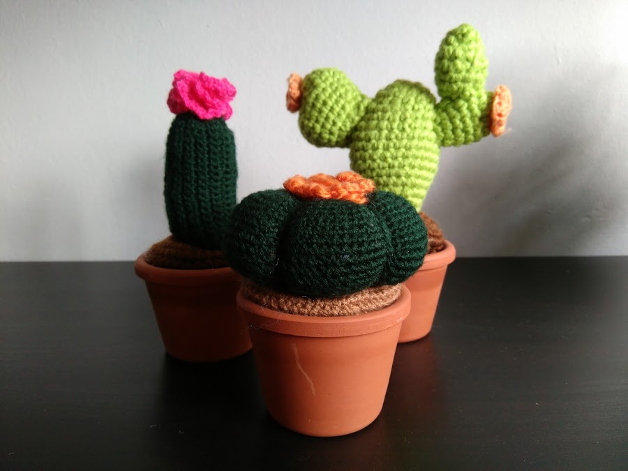 Cortar la hebra larga rellenar, no mucho para que conserve la forma del cactus mas bien plana y coser a la tierra.