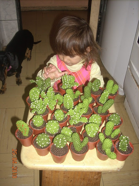 Hoy os traigo el tutorial de estos Cáctus que hice con la mariposa, he puesto el paso a paso por imagenes para que sea más fácil, espero que os guste y lo entendáis bien!! Flor 1- Anillo mágico con 6 puntos bajos cerrar con punto raso en el primer punto (en amarillo) 2- Cambiar de color , subir 3 cadenetas 3- en el mismo punto hacer 1 punto alto +3 cadenetas +1 punto raso , en el siguiente punt ...