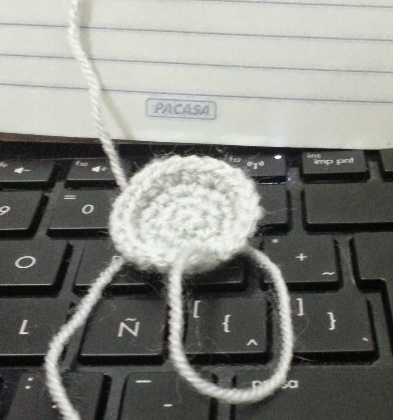 3) Hacer *dos puntos bajos en el primer punto bajo y un punto bajo en el segundo*, repetir de * hasta * para completar 18 puntos bajos