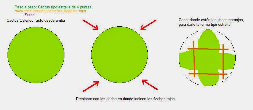 Para hacer este cactus simplemente hagan el cactus tipo Esférico de la semana pasada pero en vez de rellenarlo toman una aguja con lana verde y siguen el siguiente paso a paso: