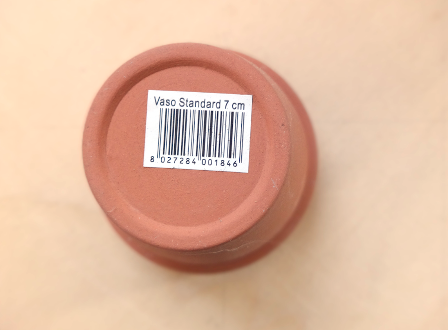 Esta es la maceta de barro estándar de 7 cm de diámetro, pequeña pero ideal como base para los cactus alfileteros