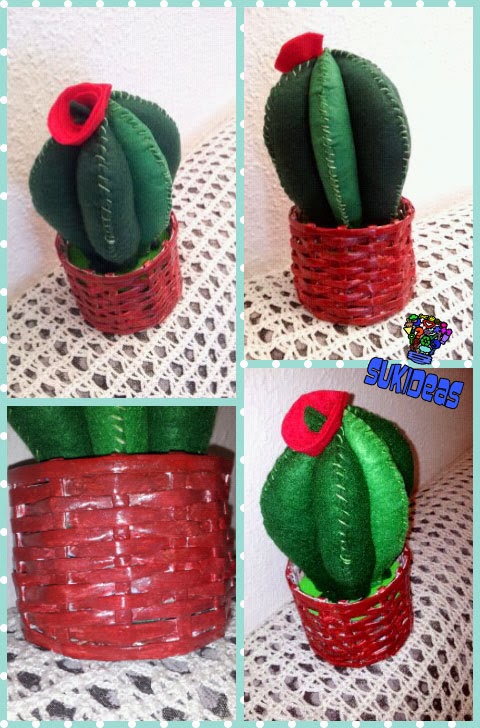 Hoy os quiero enseñar un cáctus hecho de fieltro, y maceta hecha con papel (hay que reciclar).