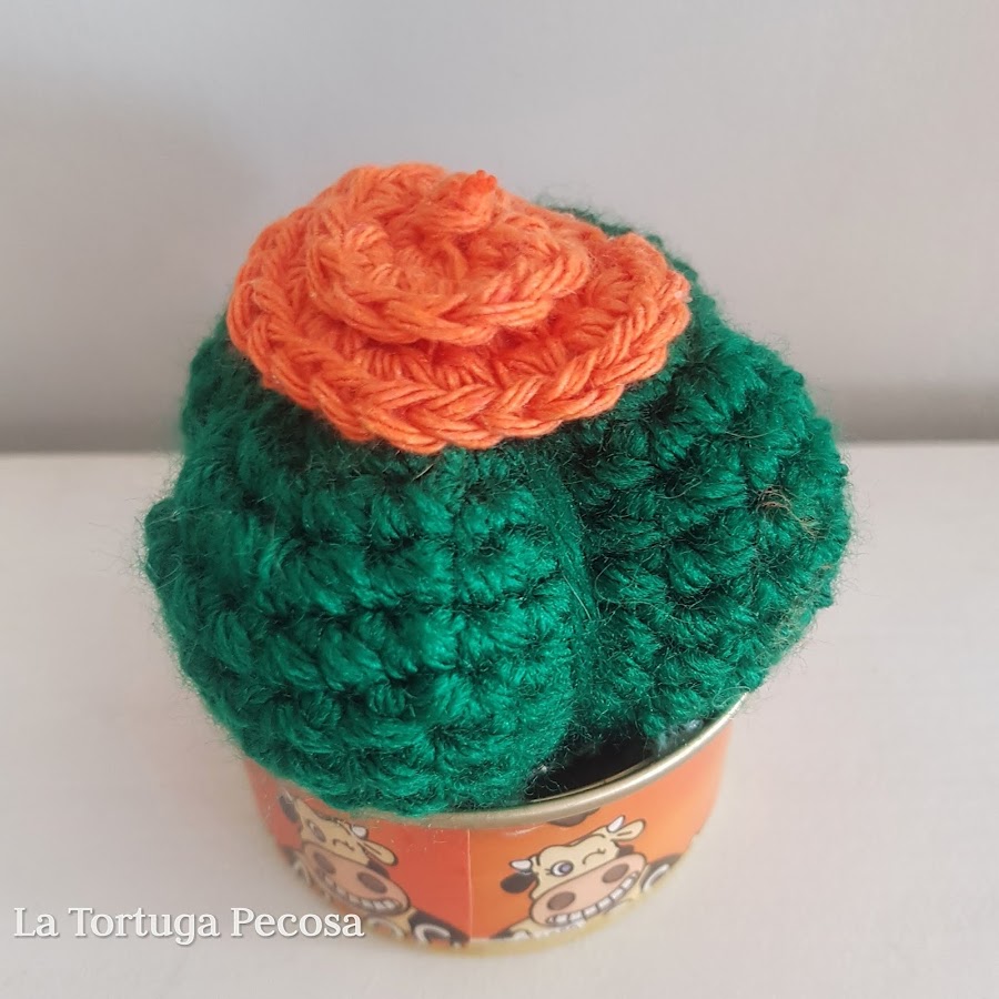 Aquí llega este cactus con mucho naranja por medio, tanto en la macetita como a nivel flor, que a dia de hoy alegrará el escritorio de alguna personita.
