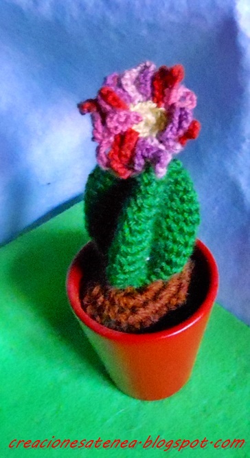 He utilizado lana y ganchillo número 4. Sólo el cáctus mide 9 cm.