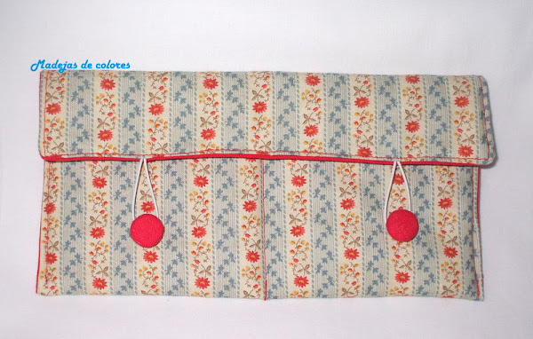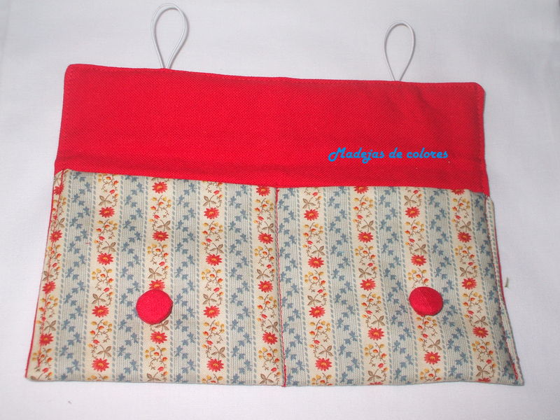 Utilicé las misma tela que a ella le había gustado, forrado de lino rojo y como cierre, 2 botones forrados.