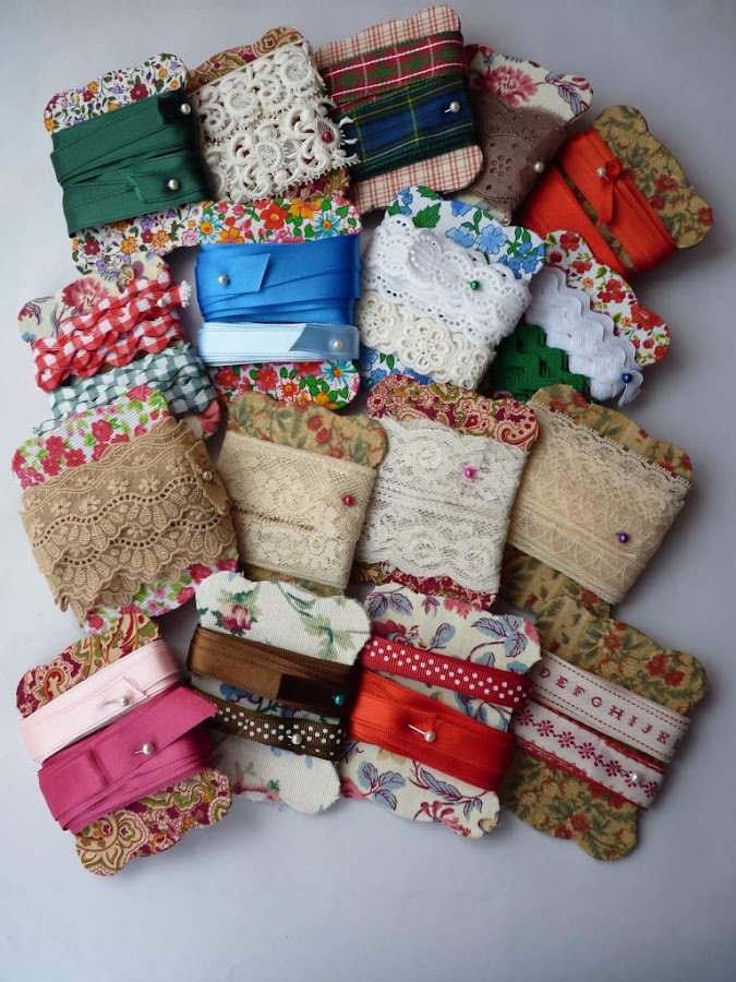Y paseando por distintos blogs, encontré este tutorial de MARISA. Es una artista con las labores, y la idea que da para organizar puntillas y lazos me pareció práctica y original. Y la estoy llevando a cabo. Digo que estoy en ello, ya que he hecho todas las que veis en las fotos, y todavía me quedan por hacer otro tanto para tener todo en su sitio.