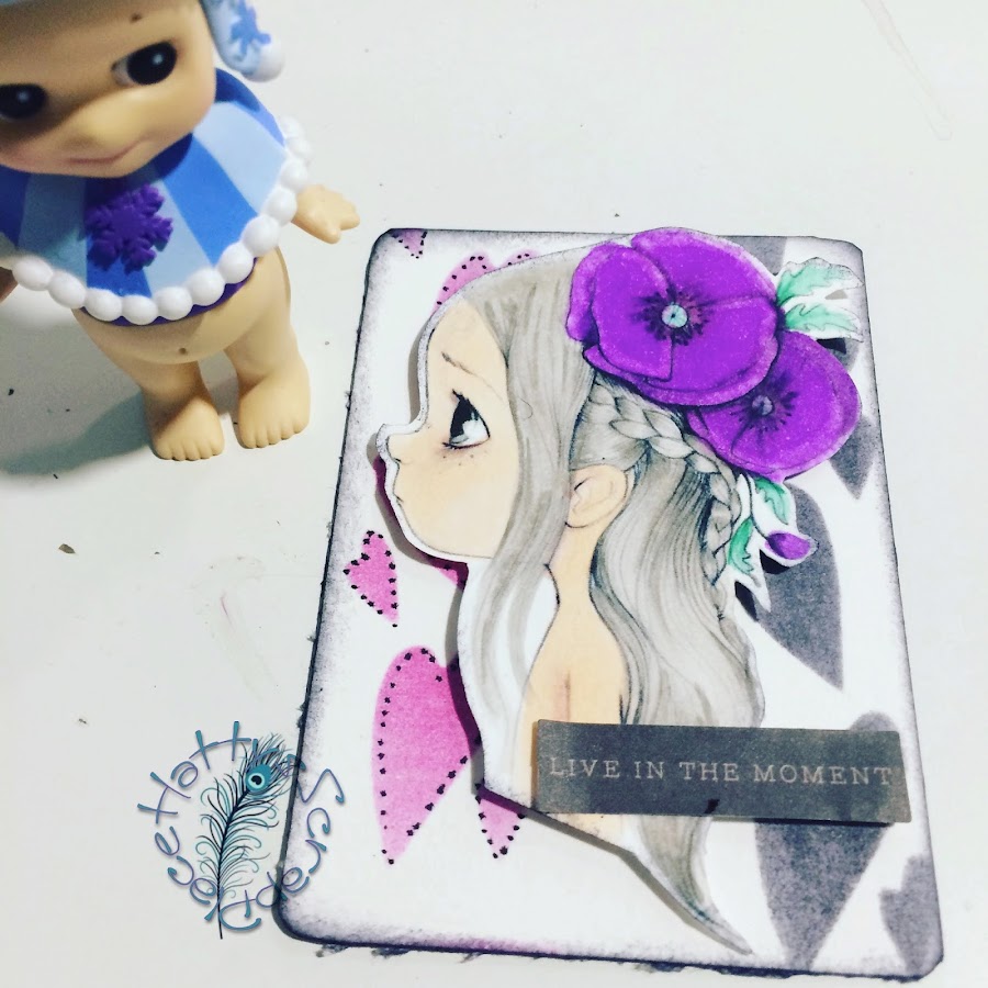 En el grupo de Fb Copic España, Cristina Valenzuela, nos propuso para este año realizar un ATC semanal, ella nos pone el digi y nosotras los coloreamos y creamos nuestro ATC.