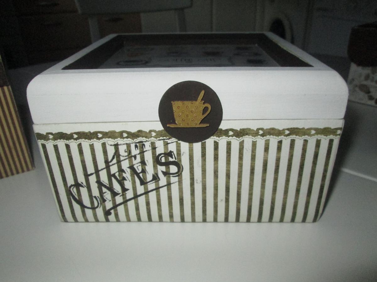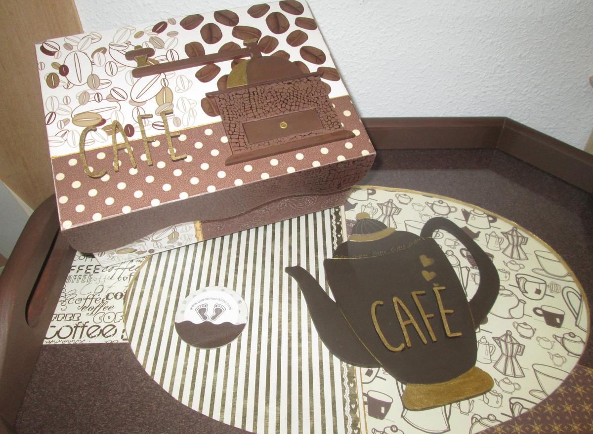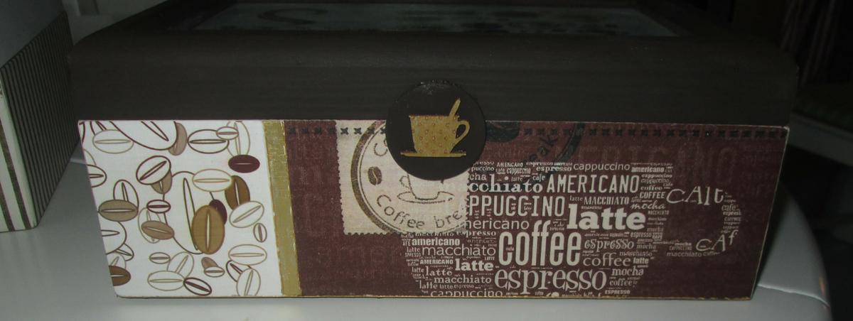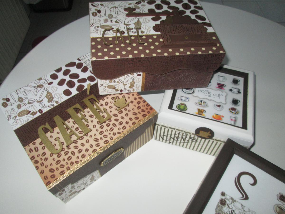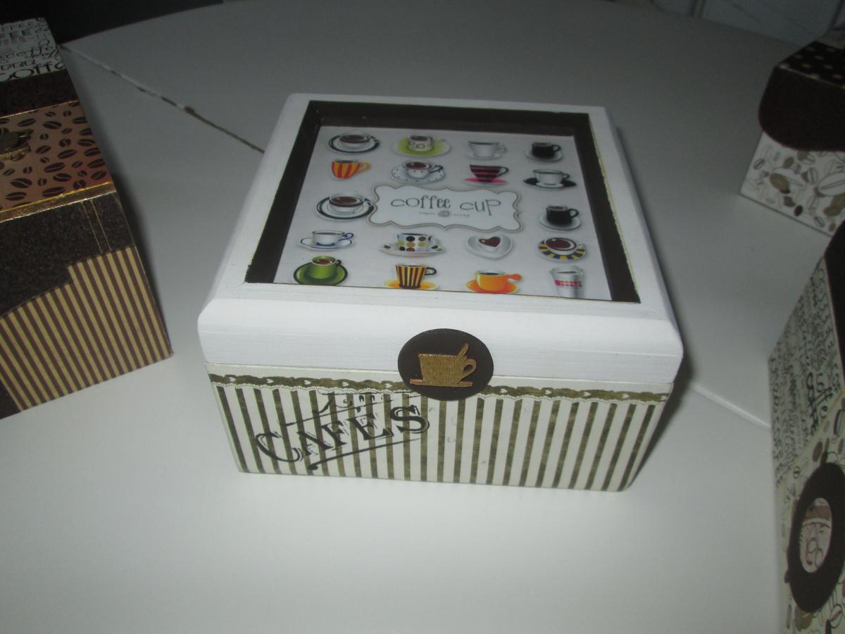 Mi cuñado y mi hija me pidieron que les hiciese una cajita para guardar las capsulas de café y una bandeja. Debió de ser un proyecto que me emocionó mucho porque me puse a ello y he hecho toda una colección. Bueno… ya veré que hago con ello, lo mismo lo pongo en wallapop o en Trueketeke.