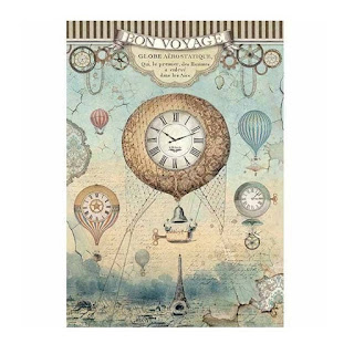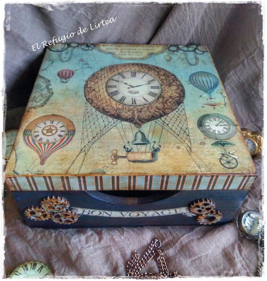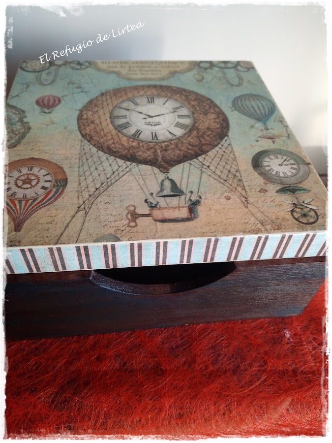 En la tapa voy a pegar un papel de arroz que me gustó desde que lo vi. (Siempre me atraen las imágenes de globos aerostáticos, estoy segura de que alguna vez haré un viaje en globo, no lo dudo).