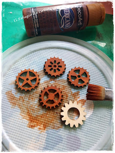 Con parte del mismo papel sobrante y con unas siluetas de engranaje que me regalo Mia adorno toda la parte delantera.