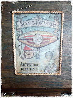Para rematar hice con pasta de modelar y la ayuda de un molde de silicona flexible unos cordoncillos que rodean toda la imágen y que van envejecidos con cera vintage y cera transparente.